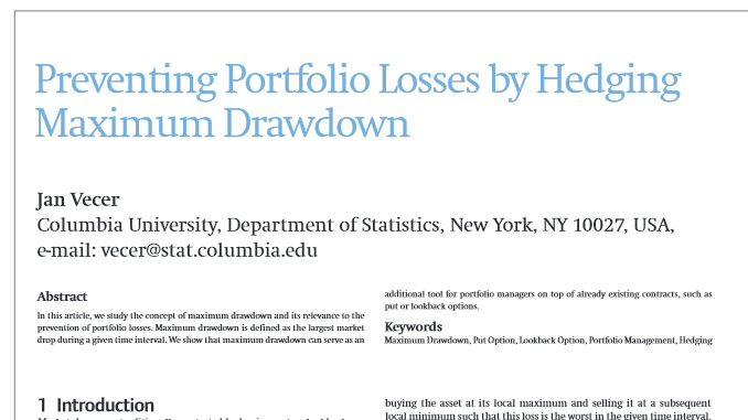 Preventing Portfolio Losses by Hedging Maximum Drawdown: Wilmott Magazine Article – Jan Vecer