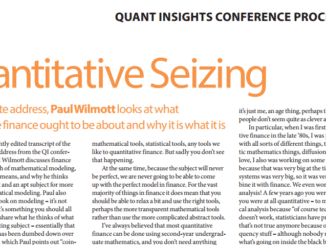 You’ve just tried to access content that is only available to WILMOTT INNER CIRCLE members! Membership of WIC is a simple, free, upgrade to ordinary membership of wilmott.com. All we need is a bit more personal […]
